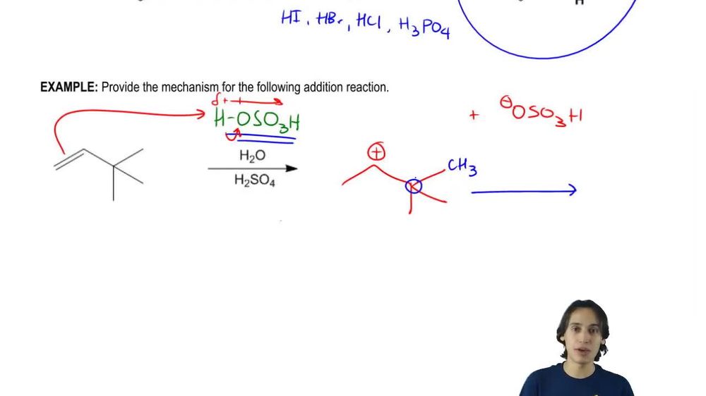 Acid-catalyzed mechanisms involve the use of an acid to facilitate the reaction process, often by protonating functional groups to enhance their reactivity. In the context of the pinacol rearrangement, the acid activates the diol, leading to the formation of a more reactive carbocation. Understanding how acids influence reaction pathways is essential for accurately drawing the mechanism and predicting the products.