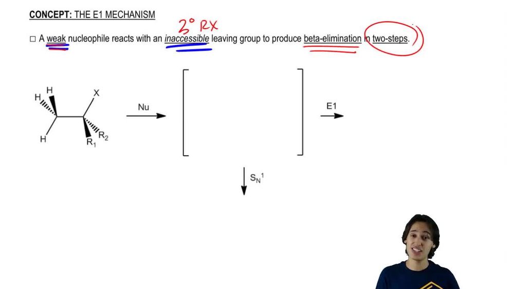 Step 1: Begin by understanding the E1 elimination mechanism. In an E1 reaction, the first step involves the formation of a carbocation intermediate after the leaving group departs. This intermediate is highly reactive and can undergo elimination or substitution reactions depending on the nucleophiles present in the reaction mixture.