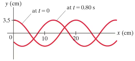 Figure 15–44 shows the wave shape at two instants of time for a sinusoidal wave traveling to the right. What is the mathematical representation of this wave?