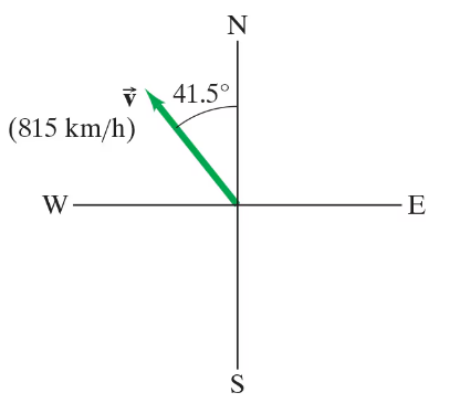 In physics, vectors have both magnitude and direction. To analyze motion in two dimensions, we often break vectors into their components along the axes, typically the x (horizontal) and y (vertical) axes. For the airplane's velocity, we can resolve its speed into northward and westward components using trigonometric functions, specifically sine and cosine, based on the angle given.