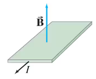 Step 1: Understand the Hall effect and its relation to the problem. The Hall effect occurs when a current-carrying conductor is placed in a magnetic field perpendicular to the current. This causes a voltage (Hall voltage) to develop across the conductor due to the deflection of charge carriers. The Hall voltage is given by the formula: , where is the magnetic field strength, is the current, is the charge carrier density, is the charge of an electron, and is the thickness of the strip.