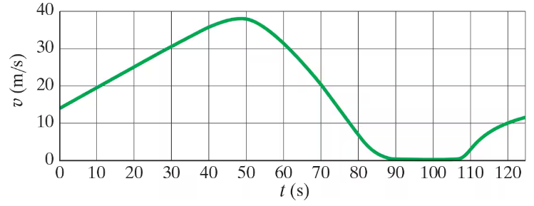 (II) Figure 2–42 shows the velocity of a train as a function of time. When was the magnitude of the acceleration greatest?