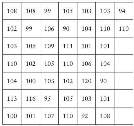 Blood Pressure Measurements Fourteen different second-year medical students at Bellevue Hospital measured the blood pressure of the same person. The systolic readings (mm Hg) are listed below.